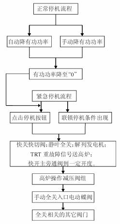 TRT紧急停机系统是在了解发电机工艺要求的基础上,在TRT事故状态下第一时间停下发电机组,并及时从高炉煤气系统中切除TRT发电机,同时打开减压阀组,在切除发电机的同时确保高炉系统稳定运行。