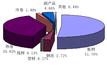 图1:2012年重钢主营业务收入分产品收入构成