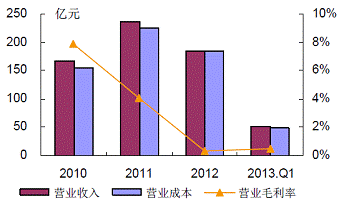图2:2010~2013年1季度重钢收入成本情况