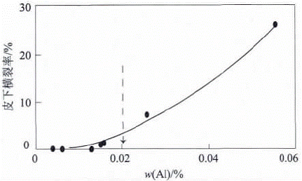 图6:铝含量与皮下横裂纹指数的关系