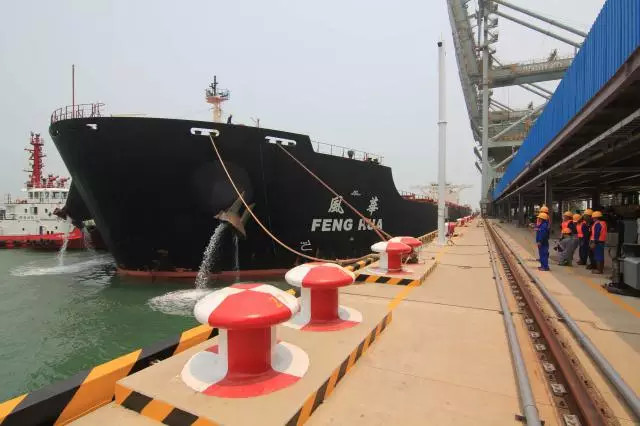 △原料码头正式投用,迎来十万吨级外轮4月20日,载重量17万吨外轮“风华”号顺利停靠湛江钢铁主原料码头。这是湛江钢铁30万吨主原料码头建成进入负荷运行以来,对外迎来的第一艘十万吨级外轮。