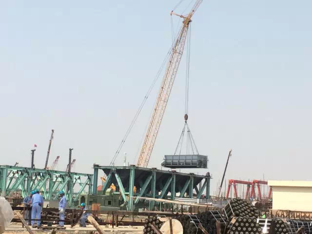 △加热炉区行车安装完毕4月28日,厚板厂主轧线加热炉区域最后一台100吨行车吊装完成,为加热炉区设备安装打下基础。