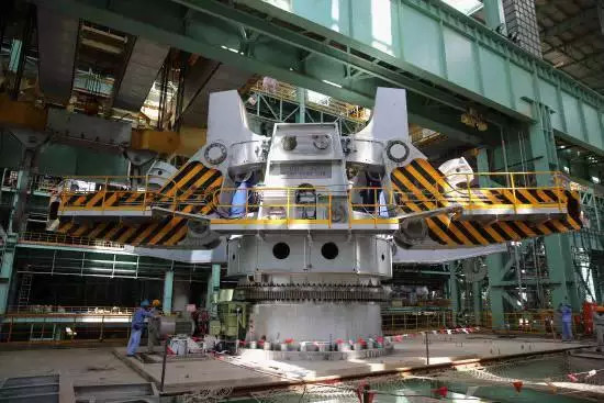 △国内最大吨位的钢包回转台进入安装阶段4月9日,湛江钢铁连铸工程两台520吨钢包回转台底座分别吊装就位,这标志着连铸工程平台设备进入了安装阶段。单臂承重520吨钢包回转台是国内最大吨位的钢包回转台,该设备重量与承载能力比值达到世界一流水平。