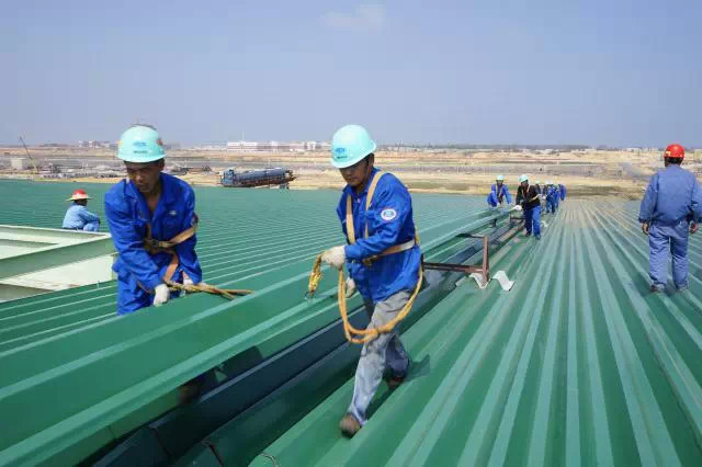 △成品库屋面提前封顶4月27日,随着最后一块彩涂板与屋面合璧,厚板厂成品库屋面最终完成封顶,比原计划提前了3天。