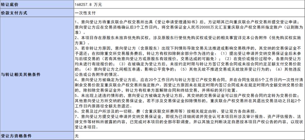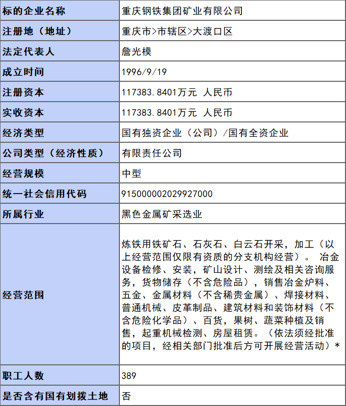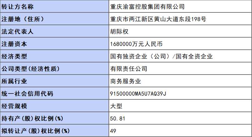 5月17日,重庆产权交易网挂牌披露重庆钢铁集团矿业有限公司(以下简称重钢矿业公司)49%股权信息。2022年5月17日至7月12日,重庆渝富控股集团有限公司(持有重钢矿业公司50.81%股权)将挂牌转让其中的49%股权,转让底价为168257.8万元。