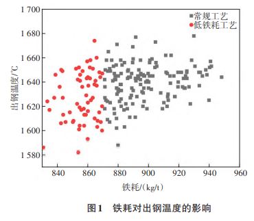 3.1 低铁耗工艺对出钢温度和终点碳含量的影响