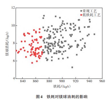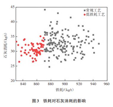 3.2 低铁耗工艺对辅料消耗影响