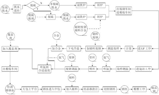 二级计量与三级计量的差异,通过系统历史分析系数,将系数纳入到二级计量与三级计量的数据调整中。减少两者之间的数据差距,确保动态成本计算数据中的准确性。炼钢环节物流图如图1所示。