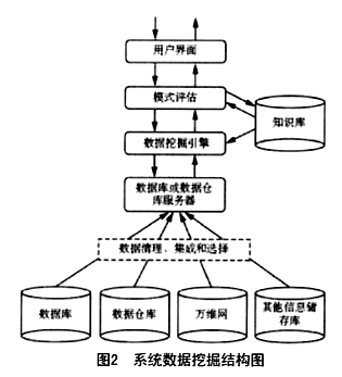 数据分析管理模块是以企业所有的数据源的集合作为分析的基础,本系统采用数据挖掘的思想对整合的企业业务数据信息,进行统计分析。系统数据挖掘结构如图2所示。