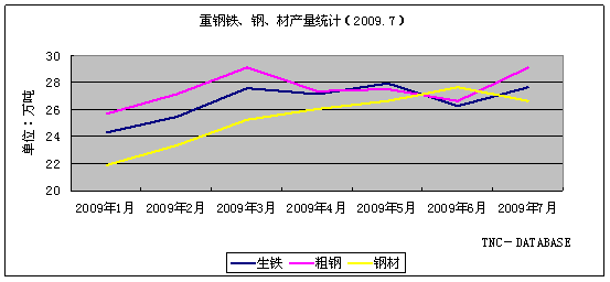 [产量]重钢铁、钢、材产量统计(2009年7月)