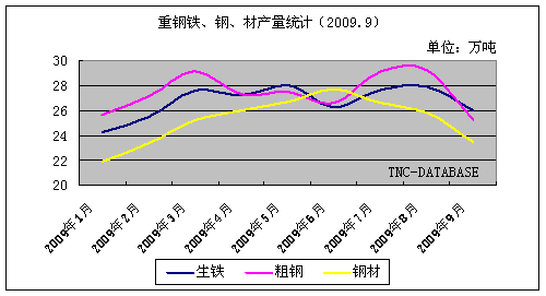 [产量]重钢集团铁、钢、材产量统计(2009.09)